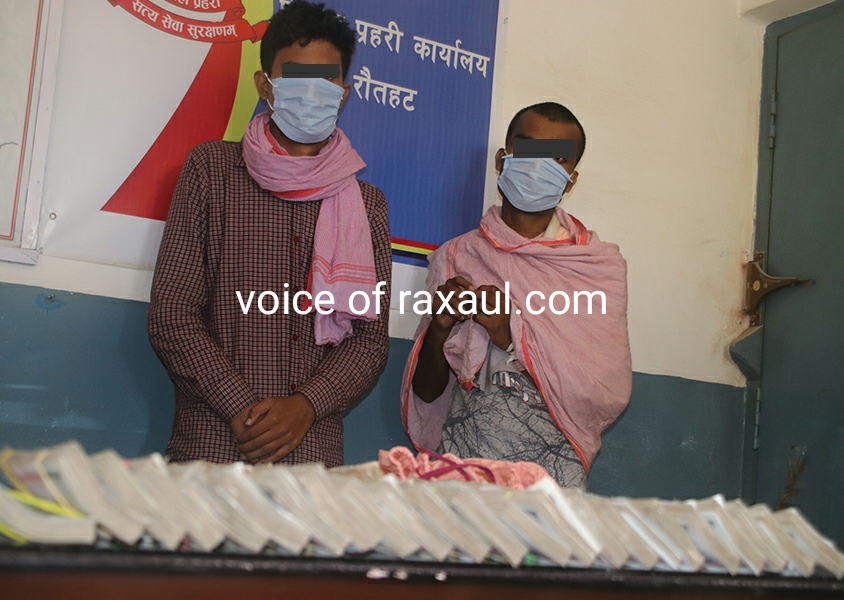 रक्सौल।(vor desk)।नेपाल के रौतहट पुलिस ने परोहा नगर पालिका के रामपुर खाप गांव से बुधवार की सुबह गुप्त सूचना के आधार दो भारतीय नागरिकों को 30 लाख 76 हजार रुपये नेपाली मुद्रा के साथ गिरफ्तार किया है।पुलिस का कहना है कि दोनों हुंडी करोबारी हैं।रौतहट के एसपी सिद्धि विक्रम ने बताया कि गुप्त सूचना थी कि बुधवार की सुबह सीमा से लगे पूर्वी चंपारण के घोड़ासहन के तरफ से ब भारतीय नम्बर के ग्लैमर बाइक बीआर 05 आर 4521 से दो भारतीय युवक नेपाली रुपए की खेप को लेकर सीमा क्षेत्र में प्रवेश किये हैं।जिस को ले कर अभियान के तहत जांच के क्रम में उक्त रकम बरामद कर ली गई। बरामद रुपये में एक हजार पाँच सौ व सौ रुपये मूल्य के नेपाली नोट शामिल है। वही पुलिस के द्वारा पकड़े गये दोनो युवक की पहचान बिहार के पूर्वी चंपारण के घोड़ासहन निवासी 22 वर्षीय बंटी कुमार कलवार व 20 वर्षीय सूरज कुमार कलवार के रूप में की गयी है।उन्होंने बताया कि मामले की छानबीन व आवश्यक कार्रवाई शुरू कर दी गई है।