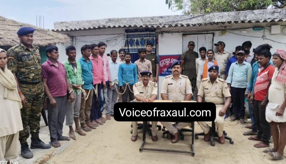 रक्सौल।(Vor desk)।मादक पदार्थ की तस्करी के विरूद्ध चलाये जा रहे विशेष अभियान के दौरान आदापुर प्रखंड अंतर्गत नेपाल सीमावर्ती हरपुर थाना पुलिस को बड़ी सफलता मिली है।पुलिस ने गुप्त सूचना के आधार पर सैनिक रोड़ कड़ियां पुल के समीप घेराबंदी कर नेपाल से पिठ्ठु बैग में रख कर लाये जा रहे 99 किलो मादक पदार्थ (गांजा) के साथ आठ लोगों को गिरफ्तार किया है। जिसकी अनुमानित कीमत चालीस लाख रुपए आंकी गई है।सभी लोग मजदूर के भेष में थे,ताकि,पकड़े न जा सके।