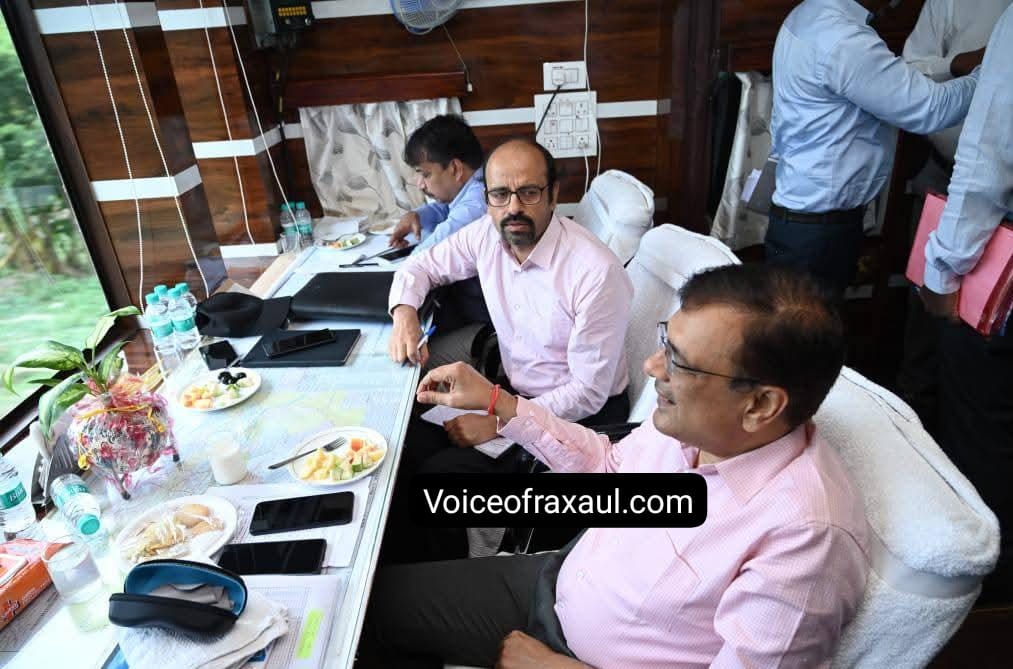 रक्सौल ।(Vor desk)।पूर्व मध्य रेलवे के महाप्रबंधक छत्रछाल सिंह और समस्तीपुर मंडल के डीआरएम विनय कुमार श्रीवास्तव शनिवार को विंडो निरीक्षण करते हुए रक्सौल पहुंचे ,जहां स्टेशन का निरीक्षण किया।साथ ही जन प्रतिनिधियों सहित सामाजिक संगठनों के प्रतिनिधियों से मुलाकात की।