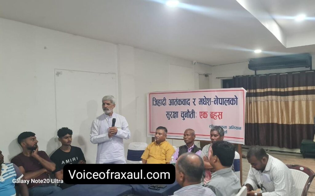 रक्सौल।(Vor desk)।राष्ट्रीय एकता अभियान पर्सा द्वारा वीरगंज में आयोजित “जेहादी आतंकवाद और मधेश – नेपाल की सुरक्षा चुनौती” विषयक गोष्ठी कार्यक्रम में वक्ताओं ने भारत-नेपाल खुले सीमा का दुरुपयोग करते हुए पाकिस्तान समर्थित आतंकवादी समूहों द्वारा नेपाल में आंतरिक सुरक्षा चुनौती बढ़ाने को ले कर गंभीर चिंता व्यक्त की।