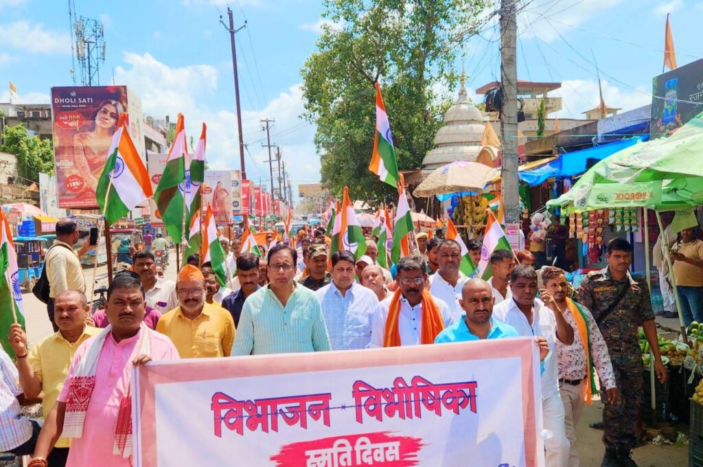 विभाजन विभीषिका का बैनर थामे बीजेपी कार्यकर्ताओं के साथ सांसद और विधायक ने निकाला पूरे शहर में पैदल मार्च