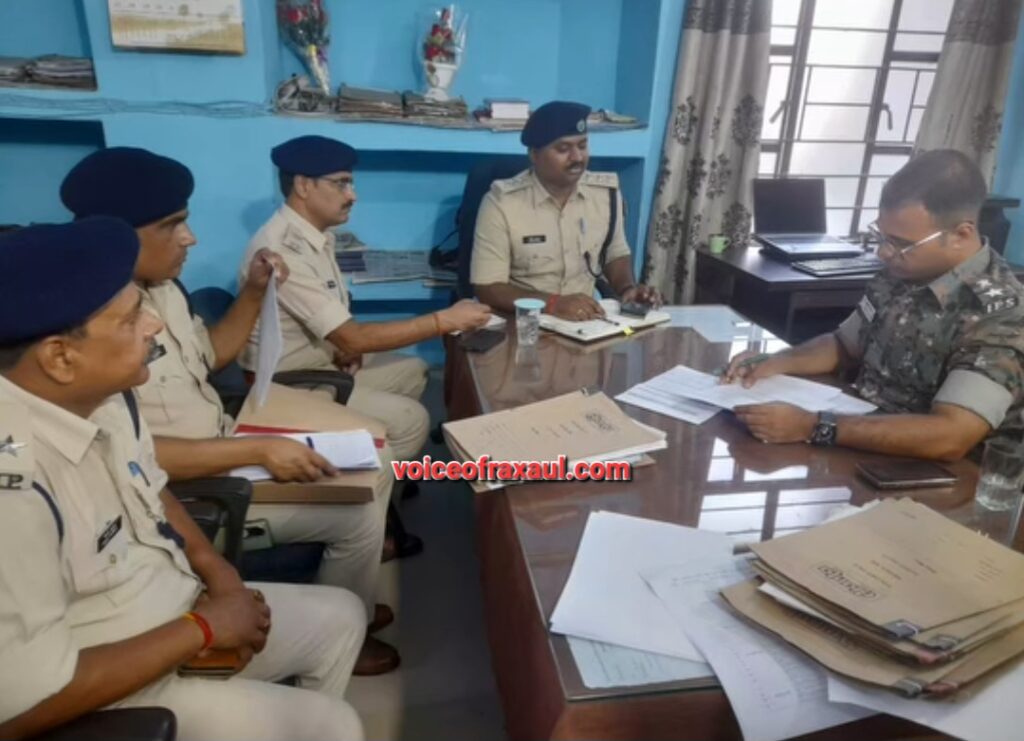 रक्सौल।(Vor desk)।पूर्वी चंपारण के एसपी स्वर्ण प्रभात बुधवार को रक्सौल पहुंचे।इस बीच उन्होंने हरैया थाना के नए मॉडल पुलिस स्टेशन का निरीक्षण किया।साथ ही रक्सौल थाना कांड संख्या180/25 का पर्यवेक्षण एवं घटनास्थल निरीक्षण किया ।इसके बाद उन्होंने एसडीपीओ मनीष आनंद की उपस्थिति में रक्सौल थाना में लंबित मामलों की समीक्षा बैठक की।यह बैठक लंबित मामलों के जल्द निपटारे के साथ ही बेहतर पुलिसिंग, लव एंड ऑर्डर मेंटेन और क्राइम कंट्रोल कानून था।बैठक में नारकोटिक्स और ड्रग्स तस्करी से जुड़े मामलों पर उनकी विशेष नजर रही। एसपी ने सभी जांच अधिकारियों को ड्रग्स तस्करी के मामलों में तुरंत गिरफ्तारी का निर्देश दिया।