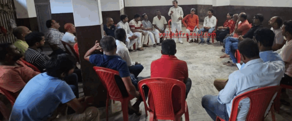 रक्सौल ।(Vor desk)। रक्सौल विधान सभा क्षेत्र में कांग्रेस पार्टी के कार्यकर्ताओं द्वारा एक बैठक का आयोजन किया गया। इसकी अध्यक्षता कांग्रेस के प्रखंड अध्यक्ष मनोरंजन तिवारी ने किया।बैठक को संबोधित करते बतौर मुख्य अतिथि ऑल इंडिया कांग्रेस कमेटी के रक्सौल विधान सभा के ऑब्जर्वर दयानंद सिंह दुसाध ने कहा कि बिहार की दुर्दशा के लिए वर्तमान सरकार जिम्मेवार है।लोक सभा में नेता प्रतिपक्ष राहुल गांधी के नेतृत्व में 28अगस्त को प्रस्तावित वोट अधिकार यात्रा में रक्सौल विधानसभा से भी कई हजार कार्यकर्ता व समाज सेवी संगठन के लोग शामिल होकर अपनी भागीदारी सुनिश्चित करने का काम करेंगे।उन्होंने कहा कि यह यात्रा एक व्यक्ति,एक वोट,एक मूल्य के सिद्धांत पर आधारित है।पूर्वी चंपारण की जनता लोकतंत्र की रक्षा के लिए कांग्रेस के साथ हैं।यह यात्रा एक राष्ट्र व्यापी अभियान का हिस्सा है।इसका उद्वेश्य मतदाताओं के अधिकारो और लोकतांत्रिक मूल्यों की रक्षा करना हैं।यात्रा विशेष रूप से युवाओं,किसानों, श्रमिकों और वंचित वर्गों के सशक्तिकरण पर केंद्रित है।वहीं, प्रखंड अध्यक्ष मनोरंजन तिवारी ने कहा कि इस विधानसभा से लाखों के तादाद में कांग्रेसी कार्यकर्ता मोतिहारी में महात्मा गांधी प्रेक्षा गृह मे शामिल होंगे।महागठबंधन के कार्यकर्ता एक जुट होकर रैली सफल बनाएंगे।