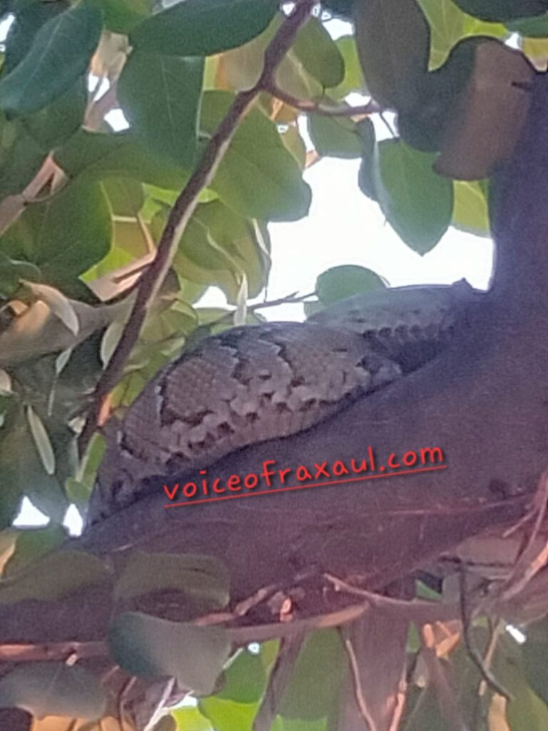रक्सौल।(Vor desk)।बिहार नेपाल सीमावर्ती रक्सौल में घोड़ासहन नहर के किनारे एक पेड़ पर मंगलवार को विशाल अजगर देखे जाने के बाद स्थानीय लोगों में दहशत का माहौल बन गया।यह घटना रक्सौल के कोइरियाटोला नहर चौक पर हुई।वन विभाग को सूचना दी गई,लेकिन,वह नहीं पहुंच सकी। जिससे यह पता नहीं चल सका कि वास्तव में वह अजगर ही है या कोई दूसरा सर्प।यह कौतूहल बन गया कि आखिर अजगर पेड़ पर कैसे जा पहुंचा।इस मामले में हो हल्ला नहीं होता और लापरवाही कायम रहती तो कई जाने जा सकती थी।यह अजगर करीब100केजी और 20फिट लंबा था।