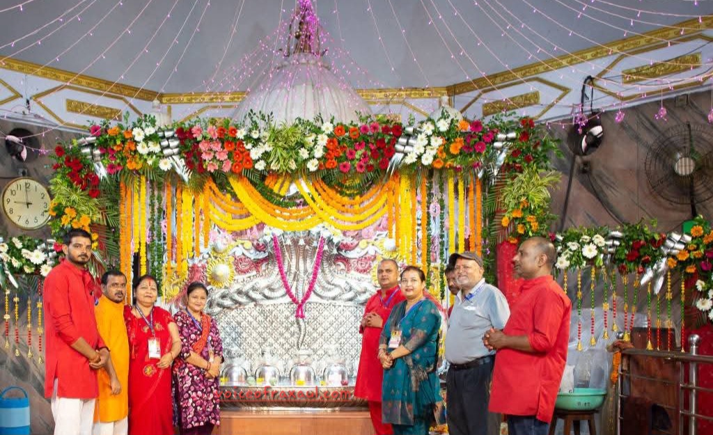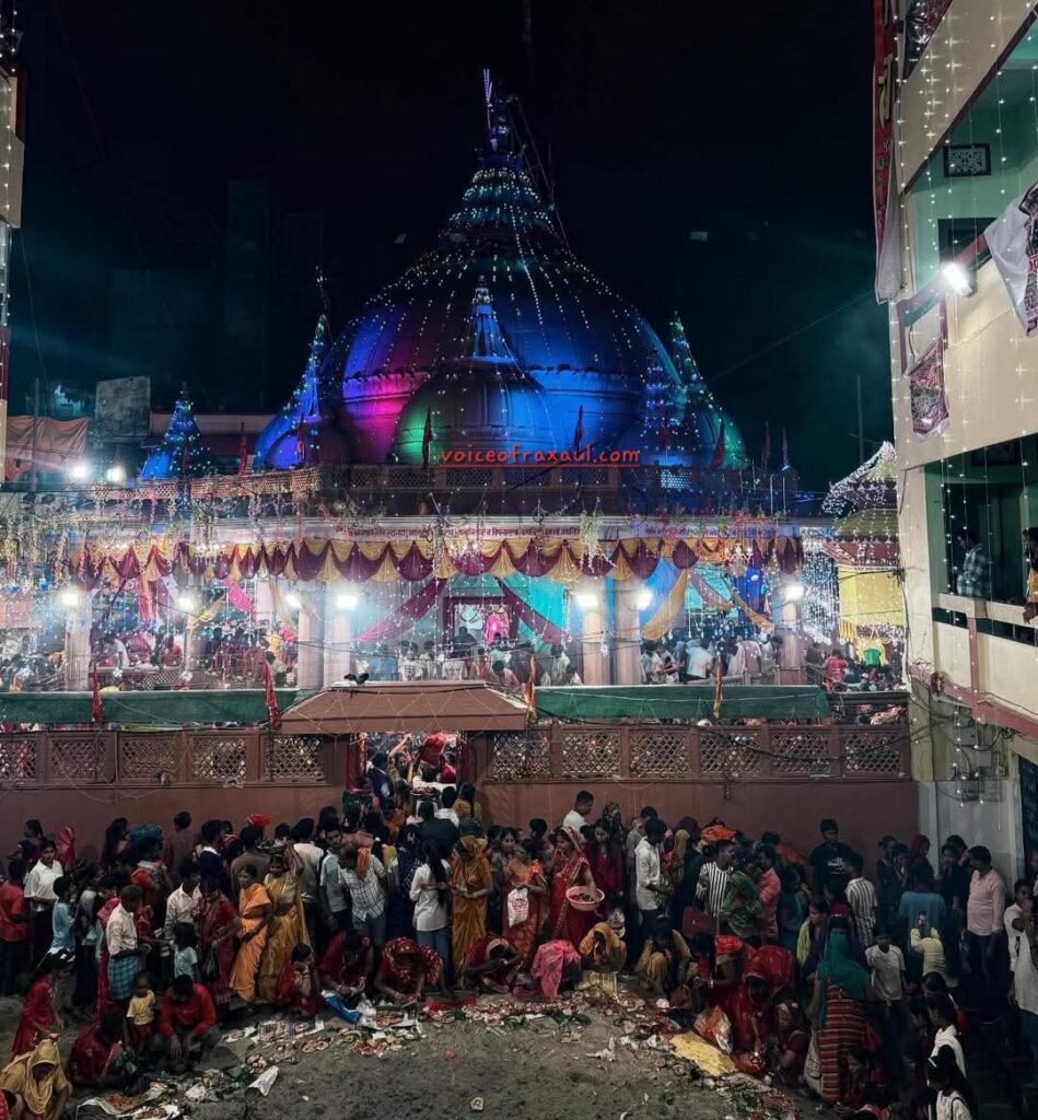 रक्सौल।(Vor desk )। शारदीय नवरात्र के सप्तमी पर नेपाल के प्रसिद्ध शक्ति पीठ की मान्यता रखने वाले वीरगंज स्थित प्रसिद्ध गहवा माई मन्दिर में फुलापाती उत्सव का भव्य आयोजन किया गया।वहीं,इस अवसर पर आयोजित मेला में सीमाई क्षेत्र समेत नेपाल- बिहार के हजारों श्रद्धालुओँ की भारी भीड़ उमड़ी।इस बीच,नेपाल के सबसे बड़े पर्व बड़ा दशहरा के सप्तमी को फुलापाती के अवसर पर अहले धूम धाम से माता का डोला निकला।पुष्प वर्षा और माता की जय जय कार के बीच नेपाल सेना के चंडी प्रसाद गण बैरक से गाजे बाजे के साथ शोभा यात्रा मालपोत कार्यालय पहुंचा।