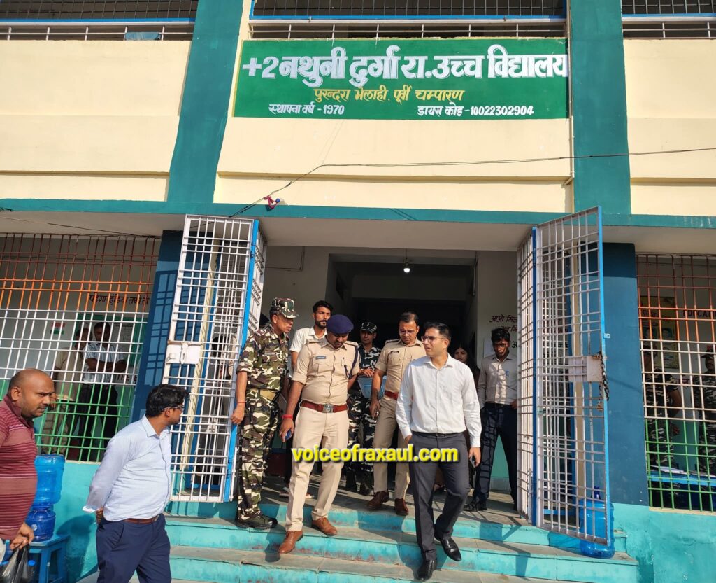 पूर्वी चम्पारण जिलाधिकारी एवं एसपी के द्वारा बिहार विधानसभा चुनाव को शांतिपूर्ण, निष्पक्ष एवं भयमुक्त वातावरण में संपन्न करने को लेकर नथुनी दुर्गा उच्च विद्यालय पुरन्दरा, भेलाही रक्सौल में सीमा सुरक्षा बल की टीम को अवांछित गतिविधि, सीमा पार आवाजाही एवं गैर क़ानूनी तत्वों पर कड़ी निगरानी रखने के संबंध में आवश्यक दिशा-निर्देश दिया गया ।