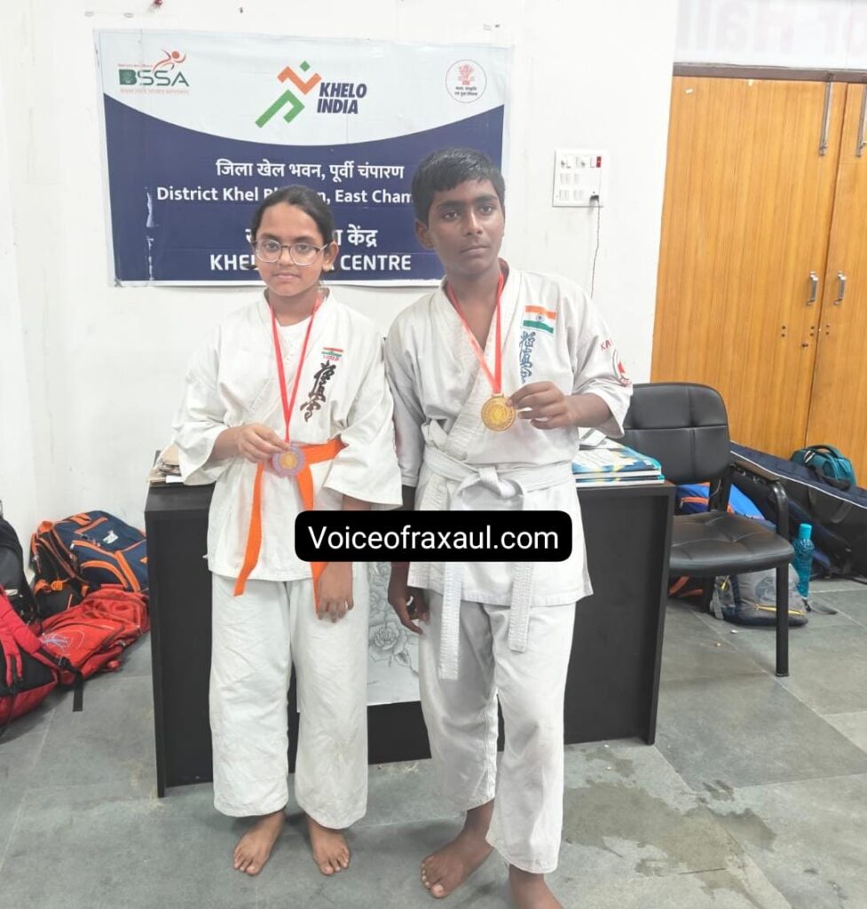 मोतिहारी/रक्सौल।(Vor desk)। जिला स्तरीय वार्षिक विद्यालय खेल प्रतियोगिता 2025-2026 के अंतर्गत खेल भवन मोतिहारी में आयोजित ताईक्वाण्डो प्रतियोगिता में रक्सौल के शांतिनिकेतन आदर्श विद्यालय (SAV) के दो युवा खिलाड़ियों ने शानदार प्रदर्शन करते हुए रक्सौल का नाम रौशन किया है।