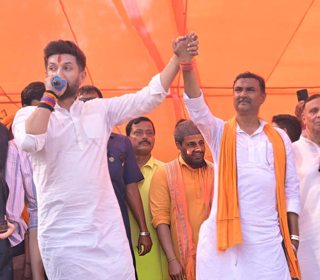 सुगौली।(Vor desk)।लोक जनशक्ति पार्टी (रामविलास) के मुखिया चिराग पासवान ने पूर्वी चंपारण के सुगौली में एनडीए के लिए जोरदार चुनावी हुंकार भरी है। मोतिहारी के रघुनाथपुर खेल मैदान में एनडीए प्रत्याशी राजेश कुमार उर्फ बबलू गुप्ता के समर्थन में जुटी विशाल भीड़ को संबोधित करते हुए चिराग ने ‘बिहार फर्स्ट, बिहारी फर्स्ट’ के अपने संकल्प को दोहराया।