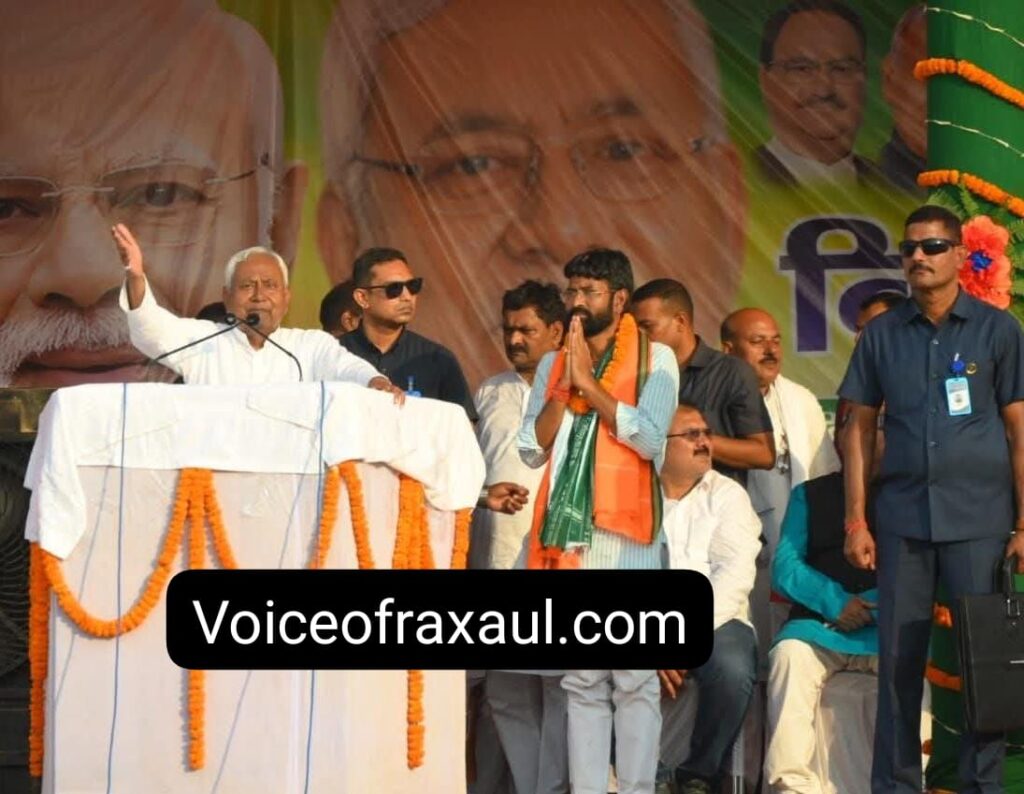 छोडादानो ।(Vor desk)। बिहार विधानसभा चुनाव के दूसरे चरण के प्रचार के तहत मुख्यमंत्री नीतीश कुमार ने शुक्रवार को छौड़ादानो प्रखंड क्षेत्र के जीतपुर उच्च माध्यमिक विद्यालय के प्रांगण में एक विशाल चुनावी सभा को संबोधित किया। यह सभा नरकटिया विधानसभा से उनकी पार्टी, जनता दल यूनाइटेड (जेडीयू) के प्रत्याशी विशाल साह के समर्थन में आयोजित की गई थी।