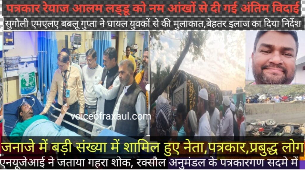 पत्रकार रेयाज आलम ‘लड्डू’ को अंतिम विदाई,सुगौली विधायक राजेश कुमार उर्फ बबलू गुप्ता ने दुर्घटना के घायलों को बेहतर इलाज का दिया निर्देश