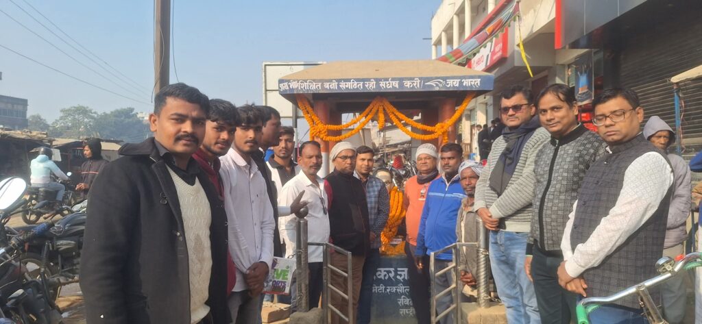 रक्सौल।(Vor desk)। शहर के अंबेडकर चौक पर शनिवार को अंबेडकर ज्ञान मंच के तत्वावधान में संविधान निर्माता भारत रत्न डॉ. भीमराव अंबेडकर के महापरिनिर्वाण दिवस के अवसर पर श्रद्धांजलि सभा का आयोजन किया गया। इस मौके पर अंबेडकर ज्ञान मंच के संस्थापक मुनेश राम के नेतृत्व में बाबा साहेब की प्रतिमा पर माल्यार्पण और पुष्पांजलि अर्पित की गई। कार्यक्रम में बड़ी संख्या में सामाजिक कार्यकर्ताओं, बुद्धिजीवियों और स्थानीय लोगों ने भाग लिया।