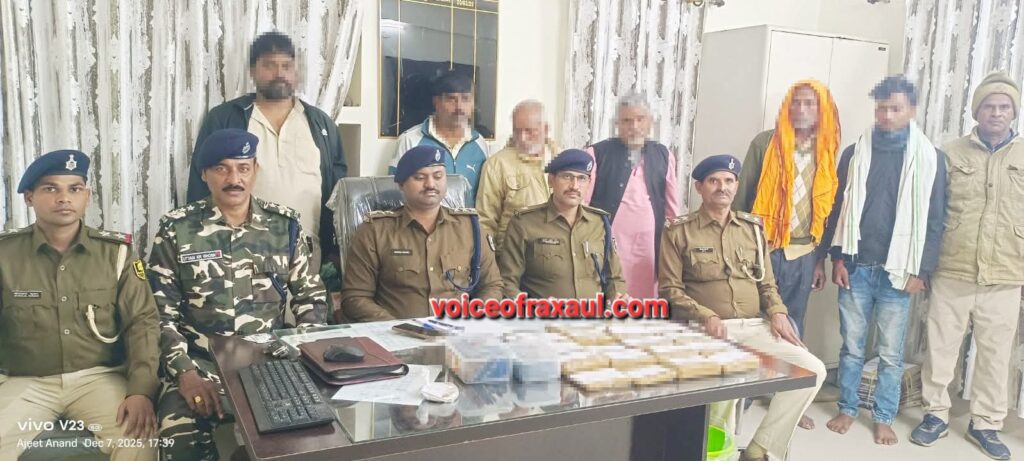 ​रक्सौल (पूर्वी चंपारण, बिहार)।(Vor desk)। भारत-नेपाल की खुली सीमा का फायदा उठाकर चल रहे एक बड़े अंतर्राष्ट्रीय चरस तस्करी सिंडिकेट का भंडाफोड़ हुआ है। रक्सौल पुलिस ने सशस्त्र सीमा बल (SSB) के सहयोग से संयुक्त कार्रवाई करते हुए, अंतर्राष्ट्रीय बाजार में लगभग तीन करोड़ रुपए मूल्य की दस किलोग्राम चरस के साथ छह अंतरराज्यीय और सीमा पार तस्करों को गिरफ्तार किया है।