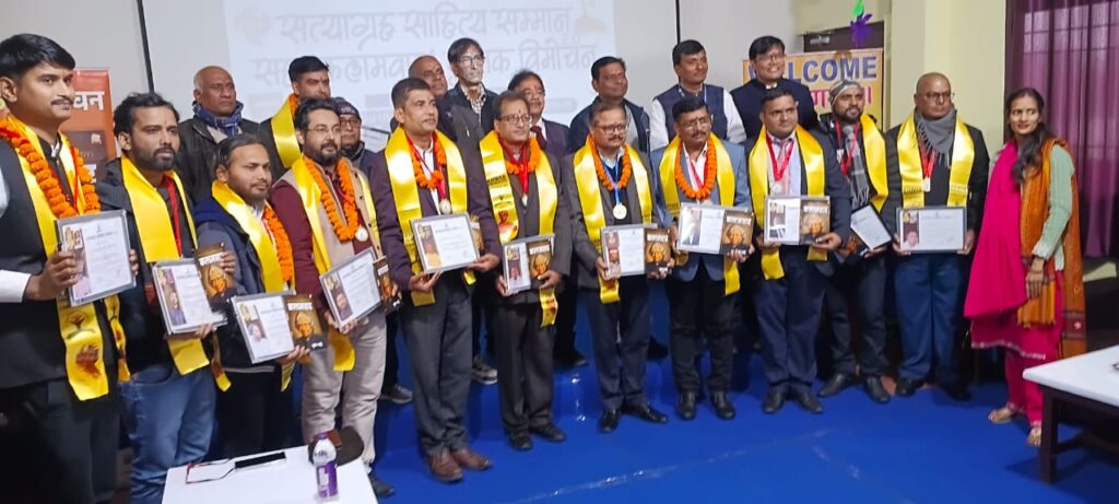 मोतिहारी।(Vor desk)। चंपारण की साहित्यिक धरा पर रविवार को विद्वानों और साहित्यकारों का अनूठा संगम देखने को मिला। स्थानीय आर्य विद्यापीठ के सभागार में ‘ख्वाब फाउंडेशन’ द्वारा आयोजित भव्य सम्मान समारोह में रक्सौल के सुप्रसिद्ध साहित्यकार प्रो. (डॉ.) स्वयंभू शलभ को उनके उत्कृष्ट साहित्यिक योगदान के लिए ‘सत्याग्रह सम्मान–2025’ से सम्मानित किया गया। उन्हें यह सम्मान उनकी छठी पुस्तक ‘संस्कृति के सोपान’ के लिए प्रदान किया गया है।