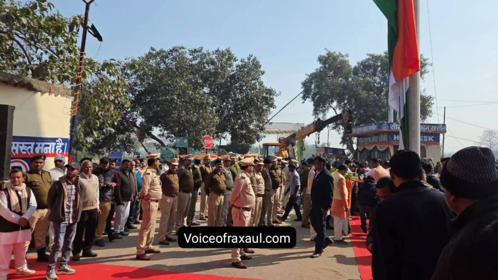 26 जनवरी 2026: भारत-नेपाल मैत्री की जीवंत गवाह रक्सौल सीमा पर आज एक नया इतिहास रचा गया। गणतंत्र दिवस के पावन अवसर पर रक्सौल बॉर्डर स्थित मैत्री पुल और लैंड कस्टम कार्यालय के समीप 100 फीट ऊंचे भव्य राष्ट्रीय ध्वज (High Mast Flag) का अनावरण किया गया। पश्चिम चंपारण के सांसद सह बीजेपी के पूर्व प्रदेश अध्यक्ष डॉ. संजय जायसवाल ने वैदिक मंत्रोच्चार और राष्ट्रगान की गूंज के बीच तिरंगा फहराकर इसे राष्ट्र को समर्पित किया।नगर परिषद रक्सौल द्वारा स्थापित यह हाई मास्ट तिरंगा अब अंतरराष्ट्रीय सीमा पर भारत के स्वाभिमान का प्रतीक बनकर दूर से ही दिखाई देगा।