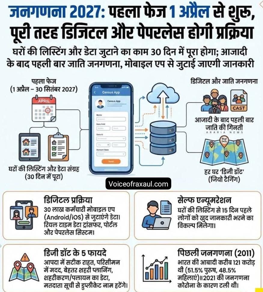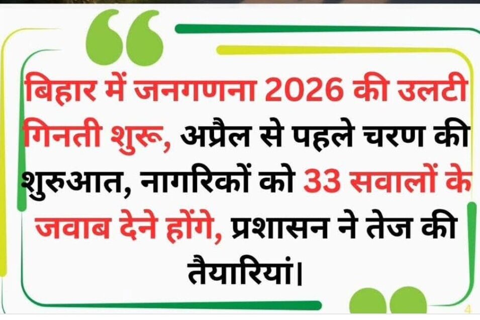 पटना/रक्सौल ।कार्यालय संवाददाता ।(Vor desk)।बिहार में भारत की जनगणना-2027 के प्रथम चरण की घोषणा कर दी गई है। राज्य में जनगणना की प्रक्रिया की शुरुआत ऑनलाइन स्व-गणना (Self Enumeration) से होगी, जिसके लिए 18 अप्रैल से 1 मई 2026 तक का समय निर्धारित किया गया है। मुख्य सचिव की अध्यक्षता में मंगलवार को हुई राज्य स्तरीय जनगणना समन्वय समिति की बैठक में इस डिजिटल पहल और फील्ड वर्क की तिथियों को अंतिम रूप दिया गया।