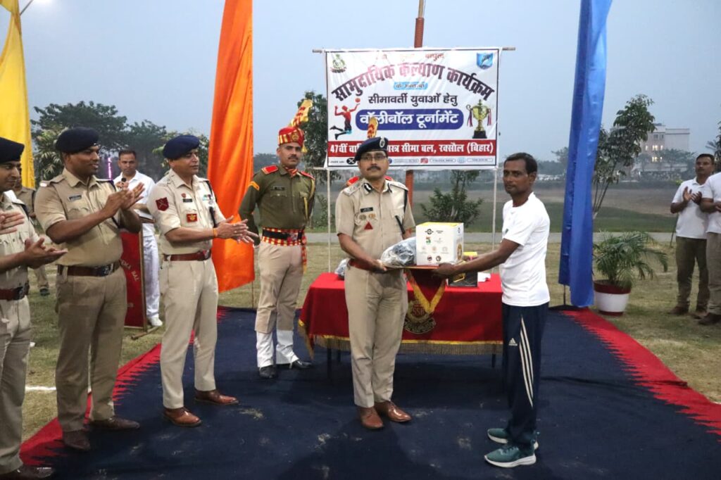 रक्सौल।(Vor desk)। सशस्त्र सीमा बल (एसएसबी) की 47वीं वाहिनी के रक्सौल मुख्यालय प्रांगण में गुरुवार को सामुदायिक कल्याण कार्यक्रम के अंतर्गत एक दिवसीय वॉलीबॉल प्रतियोगिता का भव्य आयोजन किया गया। वाहिनी के कमांडेंट संजय पाण्डेय के मार्गदर्शन में आयोजित इस प्रतियोगिता का मुख्य उद्देश्य सीमावर्ती युवाओं को शारीरिक व मानसिक रूप से स्वस्थ, अनुशासित और सशक्त बनाना है। साथ ही खेल भावना का विकास कर युवाओं को नशे जैसी कुरीतियों से दूर रखने और सामाजिक एकता को बढ़ावा देने का आह्वान किया गया।