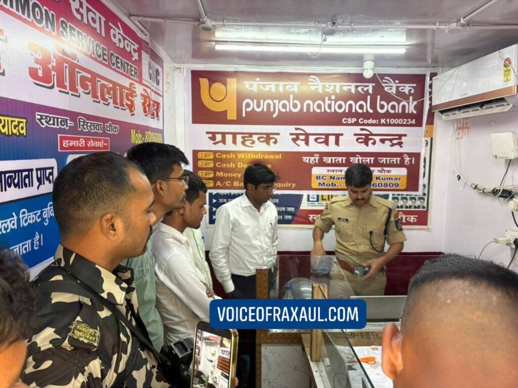 रक्सौल (पूर्वी चंपारण)।(Vor desk)।: भारत-नेपाल सीमा क्षेत्र के रक्सौल प्रखंड अंतर्गत सिसवा गांव में बुधवार को पुलिस और प्रशासन की संयुक्त टीम ने एक बड़े फर्जीवाड़ा गिरोह का भंडाफोड़ किया है। अनुमंडल पदाधिकारी मनीष कुमार और प्रशिक्षु आईपीएस सह रक्सौल थानाध्यक्ष हेमंत सिंह के नेतृत्व में सिसवा चौक स्थित एक कॉमन सर्विस सेंटर (सीएससी) पर अचानक छापेमारी की गई। गुप्त सूचना के आधार पर हुई इस कार्रवाई के दौरान केंद्र पर अफरा-तफरी मच गई और भारी भीड़ जमा हो गई।