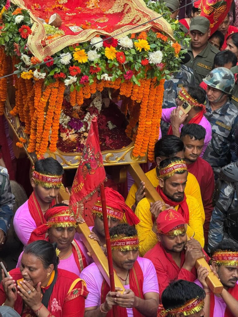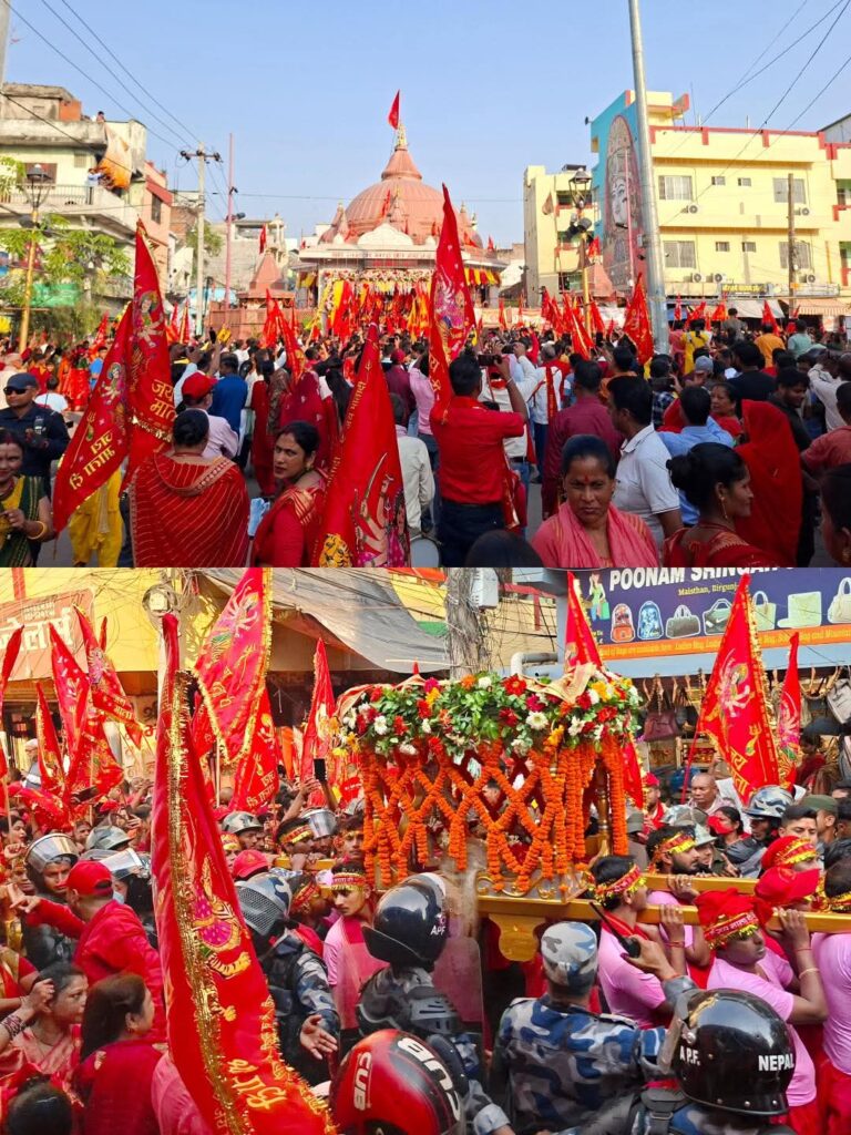 कड़ी सुरक्षा व्यवस्था के बीच संपन्न हुई इस यात्रा ने लगातार तीसरी बार भव्यता का रिकॉर्ड बनाया। ज्ञात हो कि जून 2023 में मंदिर के आधुनिक जीर्णोद्धार के बाद से यह आयोजन नियमित हो गया है। वीरगंज की यह परंपरा शारदीय नवरात्र की ‘फूलपाती’ से भी जुड़ी है, जहाँ नेपाल सेना द्वारा माता की डोली को सलामी देने का रिवाज है।