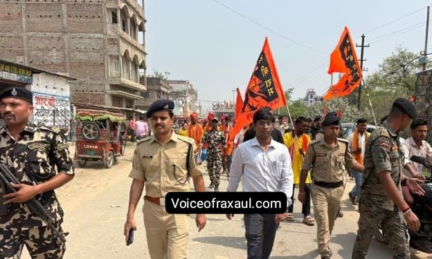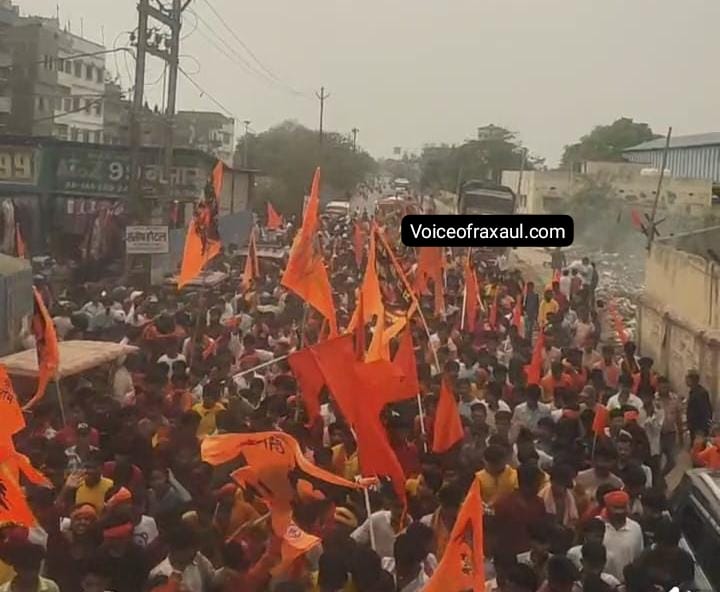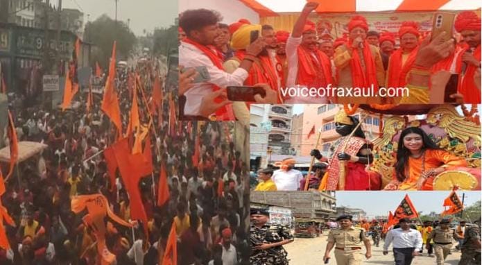रक्सौल।(Vor desk)। मर्यादा पुरुषोत्तम भगवान श्रीराम के जन्मोत्सव, ‘श्रीराम नवमी’ के पावन अवसर पर सीमावर्ती शहर रक्सौल भक्ति के रंग में सराबोर नजर आया। शहर में विश्व हिंदू परिषद और बजरंग दल के द्वारा संयुक्त रूप से भव्य शोभा यात्रा निकाली गई, जिसमें हजारों की संख्या में श्रद्धालु शामिल हुए। गाजे-बाजे ,भगवा व हनुमान ध्वज और पारंपरिक अस्त्र-शस्त्रों के प्रदर्शन के साथ निकली इस यात्रा ने पूरे नगर को राममय कर दिया।