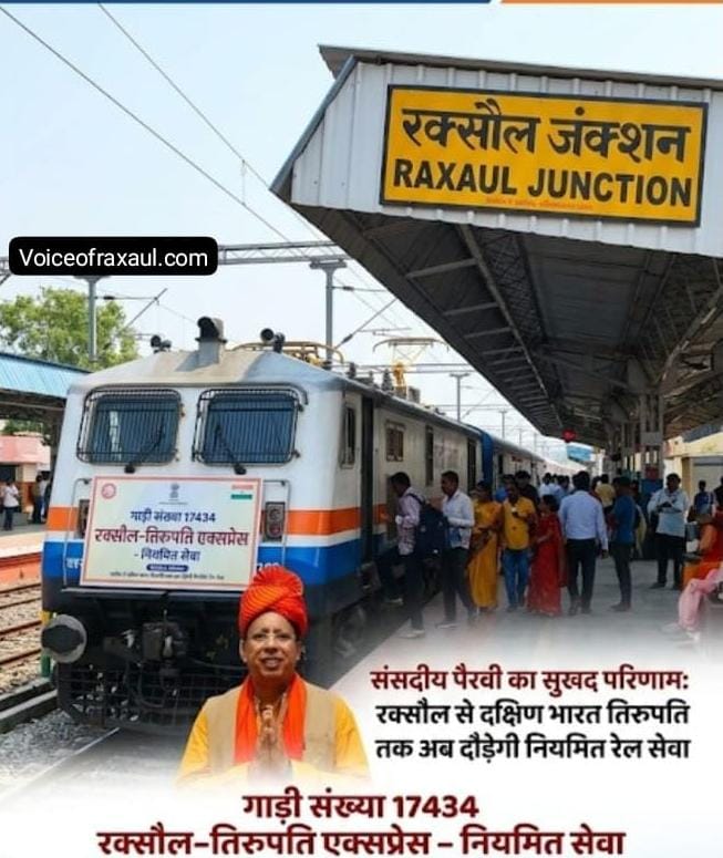 रक्सौल। (Vor desk)। भारत-नेपाल सीमावर्ती क्षेत्र रक्सौल सहित संपूर्ण चंपारण के रेल यात्रियों के लिए हर्ष का विषय है कि रेल मंत्रालय ने रक्सौल से दक्षिण भारत के तिरुपति तक एक नई नियमित ट्रेन की सौगात दी है। पश्चिम चंपारण के सांसद सह भाजपा के पूर्व प्रदेश अध्यक्ष डॉ. संजय जायसवाल के निरंतर प्रयासों के फलस्वरूप गाड़ी संख्या 17434/17433 “रक्सौल-तिरुपति एक्सप्रेस” के परिचालन को हरी झंडी मिल गई है। इस नई रेल सेवा के शुरू होने से न केवल दक्षिण भारत जाने वाले यात्रियों की वर्षों पुरानी असुविधा दूर होगी, बल्कि यह ट्रेन नेपाल स्थित पशुपतिनाथ महादेव और दक्षिण भारत के मल्लिकार्जुन ज्योतिर्लिंग के मध्य एक सांस्कृतिक एवं आध्यात्मिक सेतु का कार्य भी करेगी।