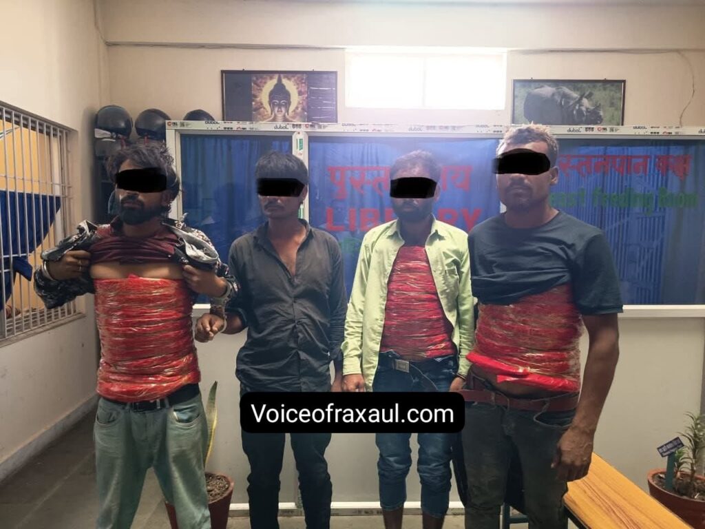 पर्सा जिला पुलिस कार्यालय के अनुसार, गिरफ्तार किए गए लोगों की पहचान बिहार के पश्चिम चंपारण जिले के बेतिया निवासी शफी अहमद(35), मझौलिया निवासी विनय ठाकुर(33), नौरंगाबाद निवासी मुकीम मियां (30)और बेतिया के मीना बाजार निवासी मोहम्मद इकबाल(28) के रूप में हुई है।